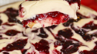 Perfeita para o café da tarde, para servir a família ou até para impressionar os amigos, essa cuca é simples de preparar, mas surpreendentemente saborosa. Cada fatia revela a combinação perfeita entre a maciez da massa, a cremosidade do leite condensado e o frescor da geleia de morangos.
