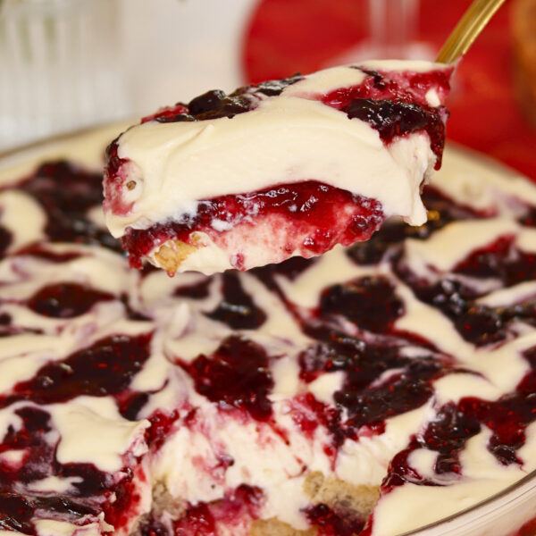 Com camadas de nata super cremosa, biscoitos macios e uma calda vermelha linda, é a escolha perfeita para fechar a ceia com chave de ouro.