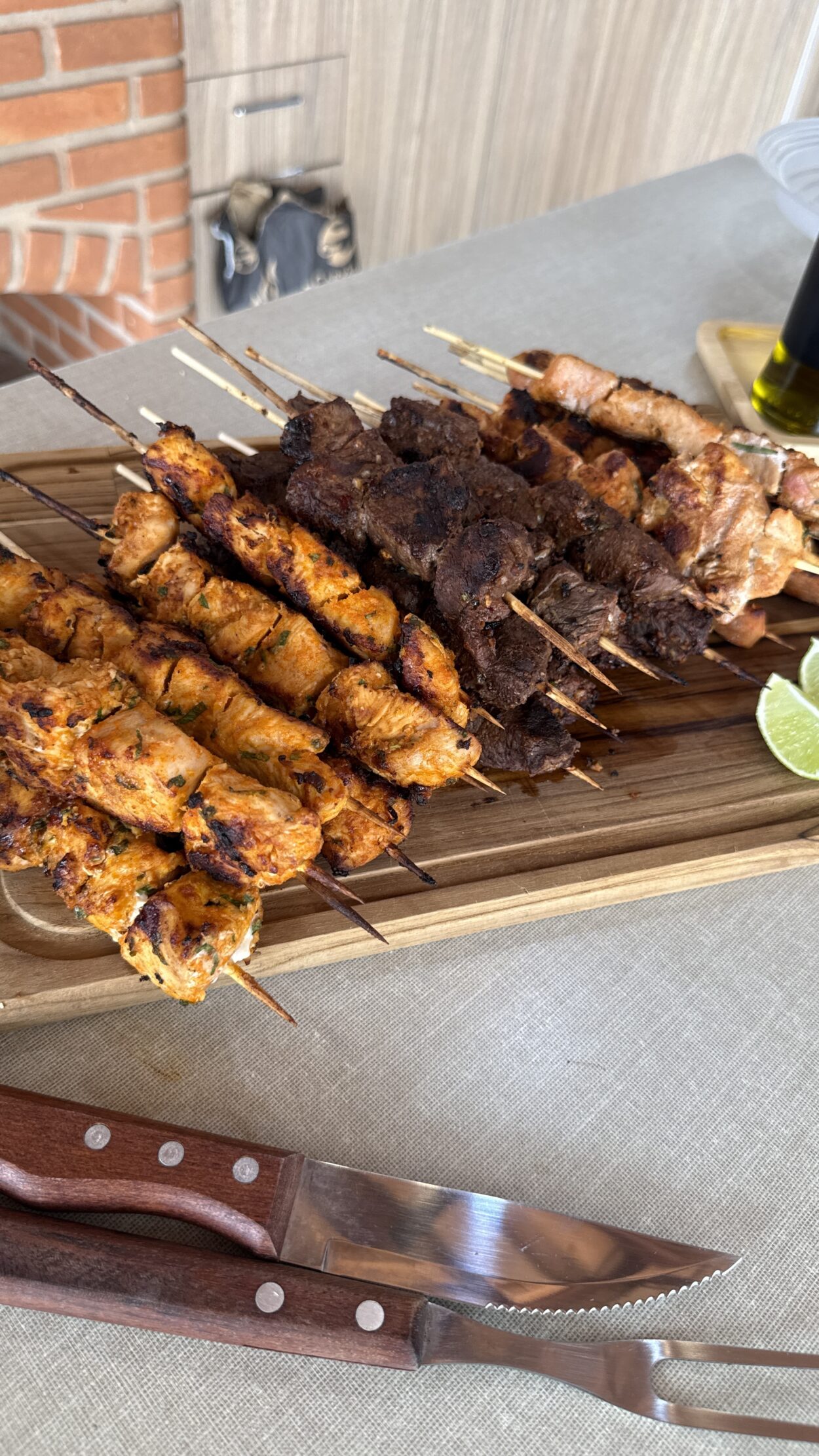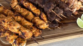 Rendimento: aproximadamente 10 espetinhos (cerca de 90 g cada).