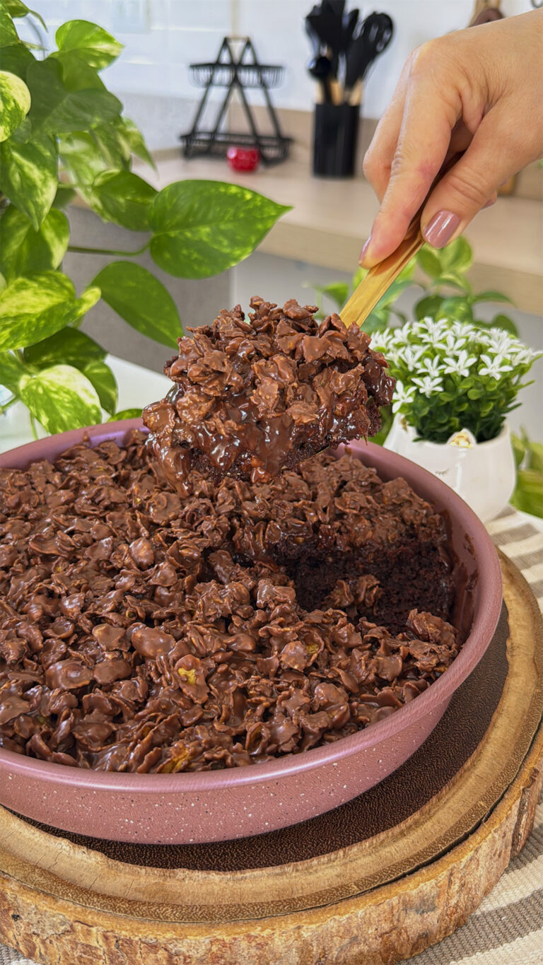 Se você é fã de bolo de chocolate, prepare-se para se apaixonar por essa versão crocante por fora e macia por dentro! O Bolo Crocante de Chocolate é daquelas receitas que surpreendem logo na primeira mordida — com uma casquinha levemente quebradiça e um interior super úmido e cheio de sabor.
