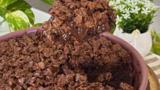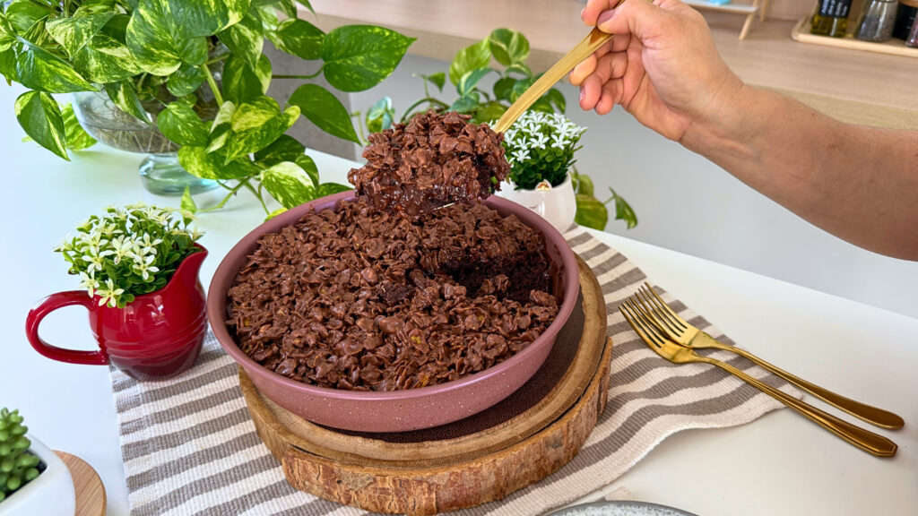 Se você é fã de bolo de chocolate, prepare-se para se apaixonar por essa versão crocante por fora e macia por dentro! O Bolo Crocante de Chocolate é daquelas receitas que surpreendem logo na primeira mordida — com uma casquinha levemente quebradiça e um interior super úmido e cheio de sabor.