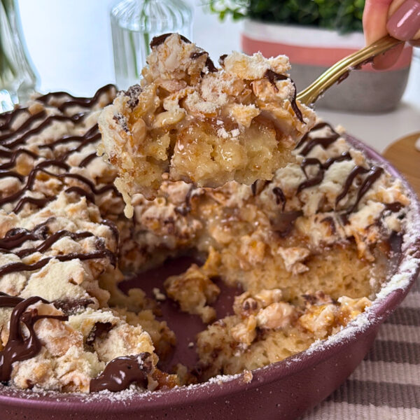 Ideal para o café da manhã, o lanche da tarde ou até para surpreender os amigos em uma visita inesperada, este bolo cuca de coco e chocolate é o equilíbrio perfeito entre doçura e textura.