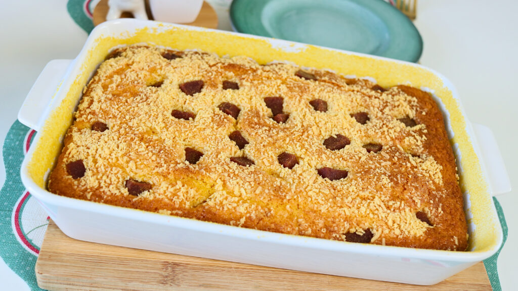 Quer um bolo caseiro fofinho, cheio de sabor e perfeito para acompanhar aquele café fresquinho? Então você precisa conhecer essa receita de Bolo de Fubá Romeu e Julieta sem glúten! Um clássico brasileiro com um toque especial: pedacinhos de goiabada derretendo e queijo parmesão que deixa tudo ainda mais saboroso.