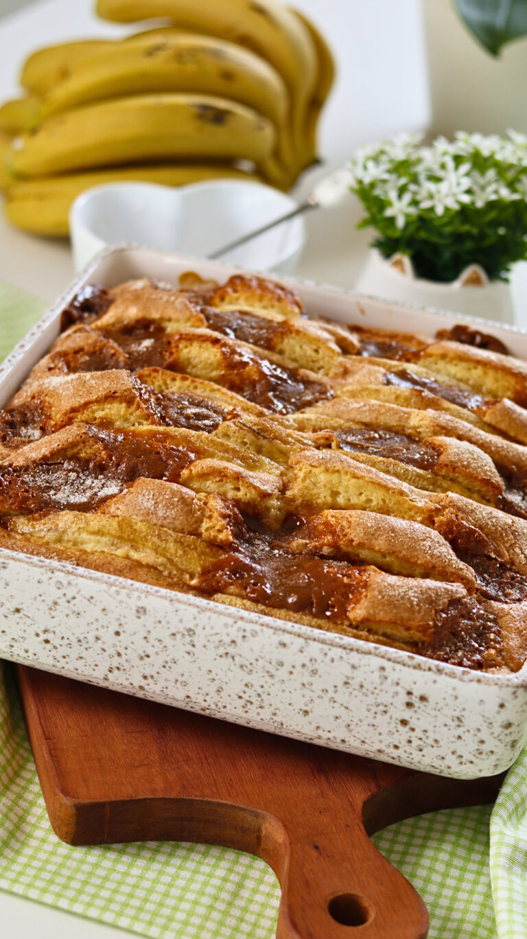 Procurando uma receita prática e deliciosa para surpreender? Esse bolo piquenique de banana com doce de leite é fofinho, úmido e cheio de sabor. A banana deixa esse bolo aromático e muito saboroso, enquanto o doce de leite no recheio garante um toque cremoso irresistível. Perfeito para um piquenique, um café da tarde ou para compartilhar com os amigos. Prepare hoje mesmo e aproveite cada pedaço!