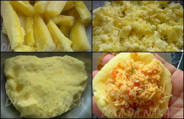 - Assim que estiver bem amassada a mandioca, sove com as mãos para que fique bem homogênea. Num primeiro momento parece que não vai dar certo. É incrível, a massa começa a dar liga e fica bem maleável. Agora é só rechear!