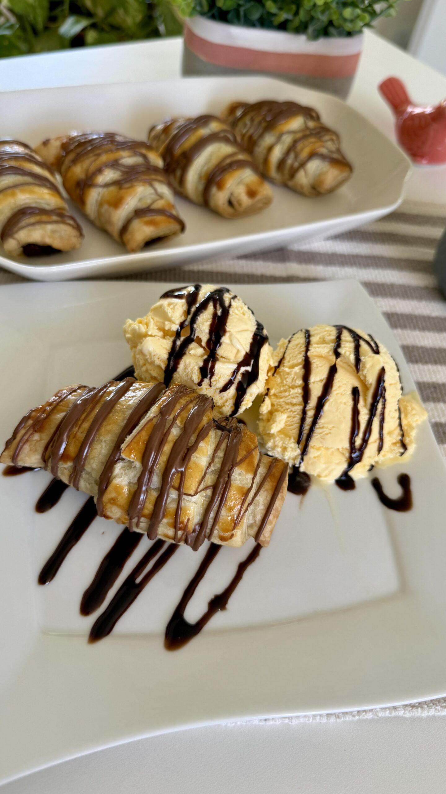 Nessa versão, o croissant ganha um toque especial: massa folhada super leve e crocante, recheio cremoso que derrete e, pra fechar com chave de ouro, uma bola de sorvete bem cremosa.