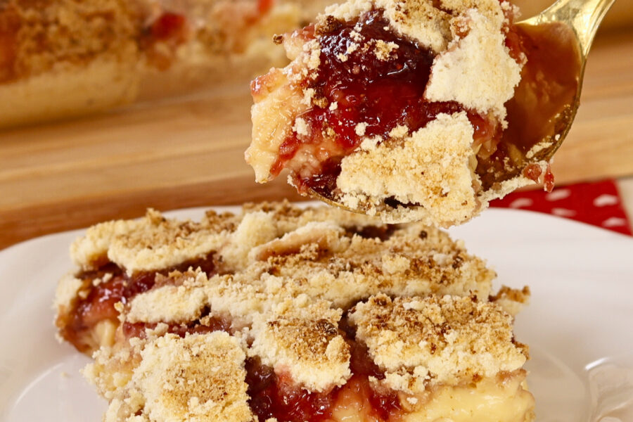 6. Retire da geladeira, desenforme e corte em quadradinhos.