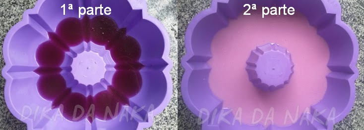 - A primeira parte do liquido coloque na forma e leve para gelar na geladeira ou no freezer se quiser que gele mais rápido.