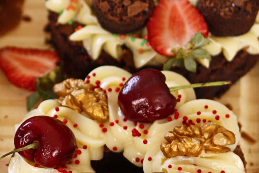 - Repita a camada de creme e cubra com morangos frescos fatiados.
