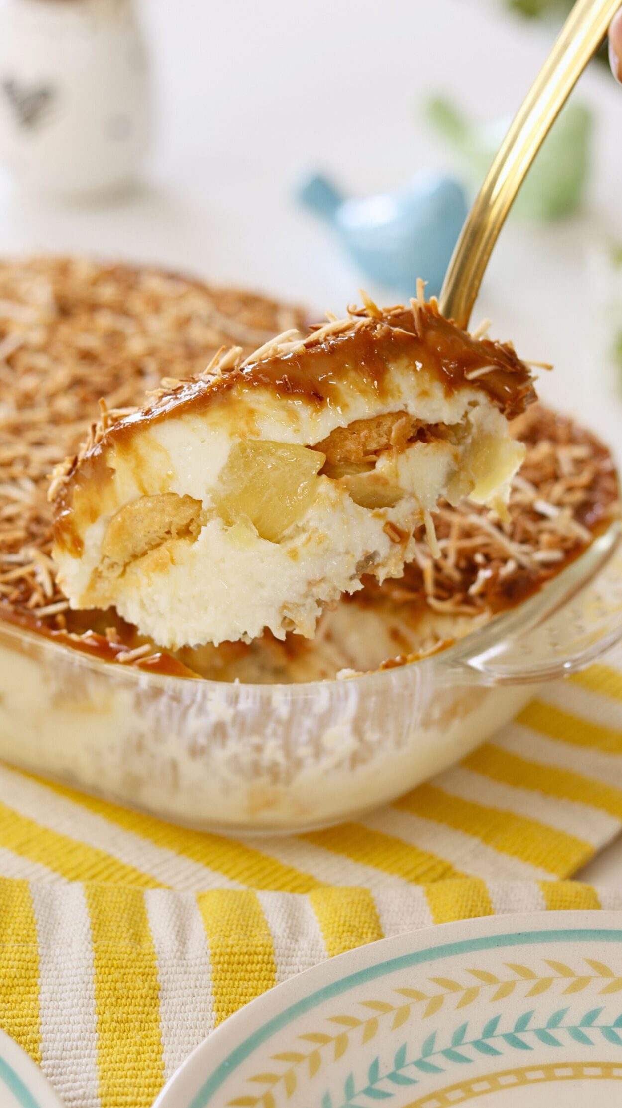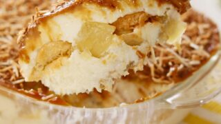 - Repita as camadas de creme de coco e doce de abacaxi.