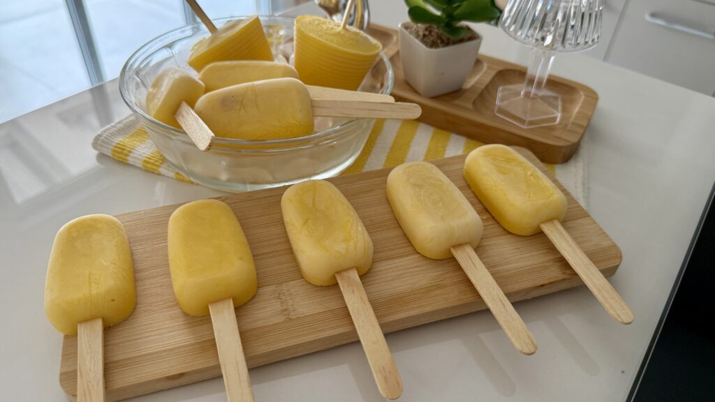 - Distribua em forminhas para picolé ou em copos descartáveis.