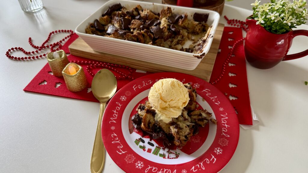 3. Despeje essa mistura no refratário, cobrindo o chocotone.