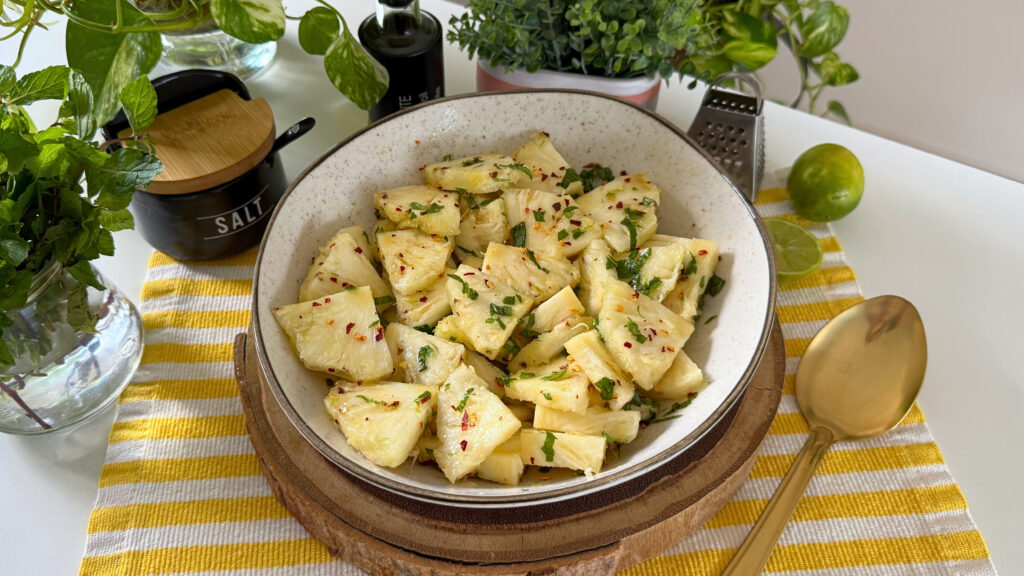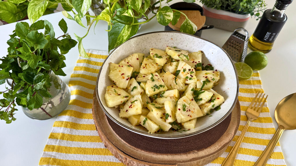 Se você acha que abacaxi só combina com sobremesa, essa receita vai te surpreender! 🍍✨ Aqui, ele ganha um toque especial com temperos que equilibram o doce, o cítrico e o levemente picante, criando uma combinação refrescante e cheia de personalidade. É daquelas preparações simples, rápidas e perfeitas para servir como entrada, acompanhamento ou até para inovar no churrasco. Depois que você provar, vai querer fazer sempre!