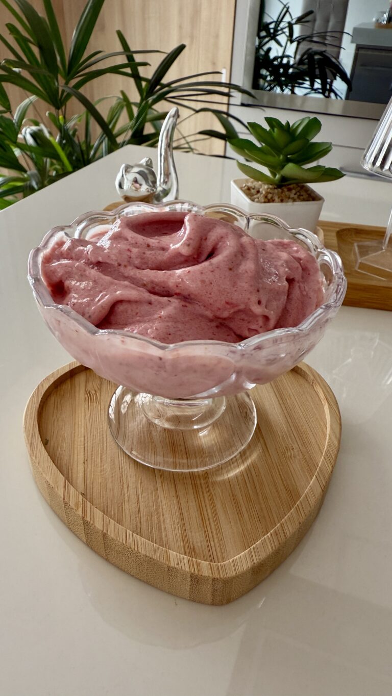 Quem disse que não dá pra se deliciar com um sorvete cremoso sem sair da linha? Essa receita de sorvete de morango é a prova de que dá, sim! Feita com ingredientes naturais e simples, ela entrega sabor, textura e frescor — tudo isso sem precisar de adição de açúcar. Ideal para os dias quentes (ou praquele momento em que bate vontade de um docinho), esse sorvete saudável vai conquistar seu paladar!