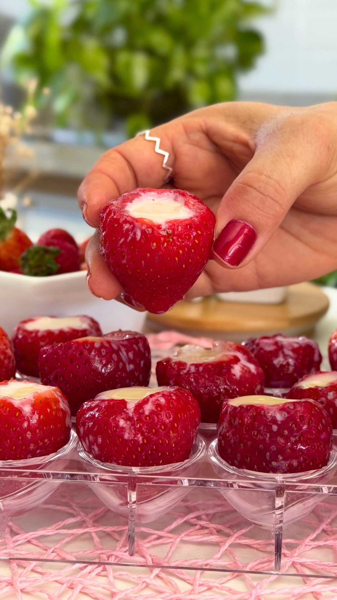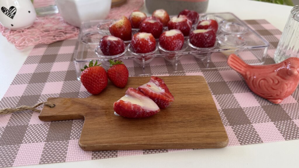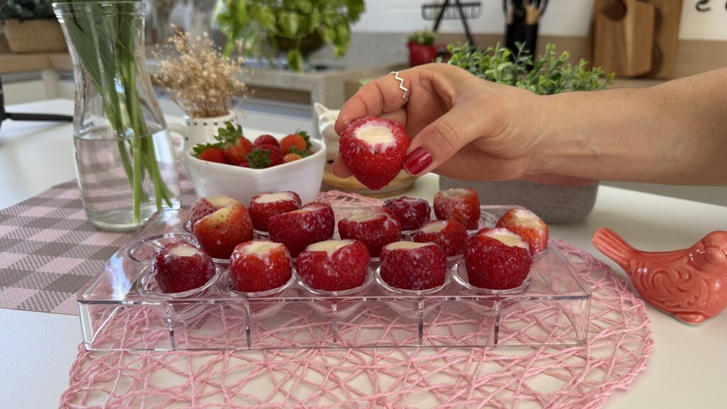 Se você ama sobremesas fáceis e refrescantes, esse morango congelado recheado com leite condensado vai te conquistar!